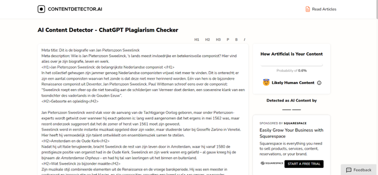 While I understand the concern of clients and I, in fact, very much share it, I also would like to warn of an over-reliance on AI checkers as a holy grail for solving this problem. It is quite strange for me to see that we all collectively (and rightfully) doubt the facts and figures AI throws our way but will blindly trust checkers to confirm if a text is written by a human or not. To illustrate my point, I ran an article I recently wrote for iGaming.com about Jan Pieterszoon Sweelinck (a Dutch composer) through the four highest-ranked results on Google for ‘AI checker’.*
